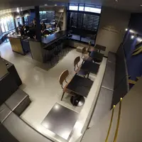 どこの席からも厨房内を見る事ができるというのも魅力のひとつ。バリスタが豆を挽き、エスプレッソマシンで抽出するまでの課程を見て楽しむこともできる。