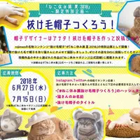 rojimanの名物コンテンツ“抜け毛帽子”が、「ねこ休み展 夏 2018」の特別企画として開催決定!猫の抜け毛を使って完成したオリジナル帽子を、期間中にSNSに投稿。その作品の中から選ばれた作品は公式図録に掲載いする。さらに、選ばれた方の中より各賞オリジナルグッズがもらえるチャンスもあり。