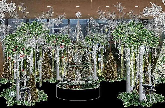 ロビーフロアには、開業15周年を祝した、まばゆいほどの“輝き”が美しい15本のクリスマスツリーをディスプレイする。障がいを持つ方々の自立支援と雇用創出を促すことを目的に、レストランやホテルで使用されたワインやシャンパンのコルク栓をリサイクルして障がい者の方たちが手作りする、きらきら輝くクリスマスオーナメントをツリーに飾るほか、募金箱を設置。寄せられた募金は、子供地球基金を通じて東北や熊本の子どもたちへと届けられる。