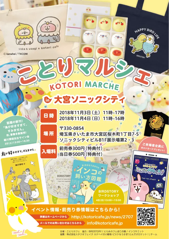 全国のカワイイ小鳥グッズ&スイーツを集めたイベント「ことりマルシェ大宮2018」が、2018年11月3日(土)・4日(日)、大宮ソニックシティにて開催。