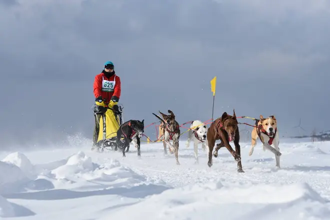 - 犬ぞり大会は1頭引きから6頭引きまで全13種目のレースを展開