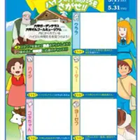 ハイジの仲間たちを探しながらスタンプを集めて、回遊できるイベント。スタンプを集めると塗り絵シートセットなどをプレゼント。