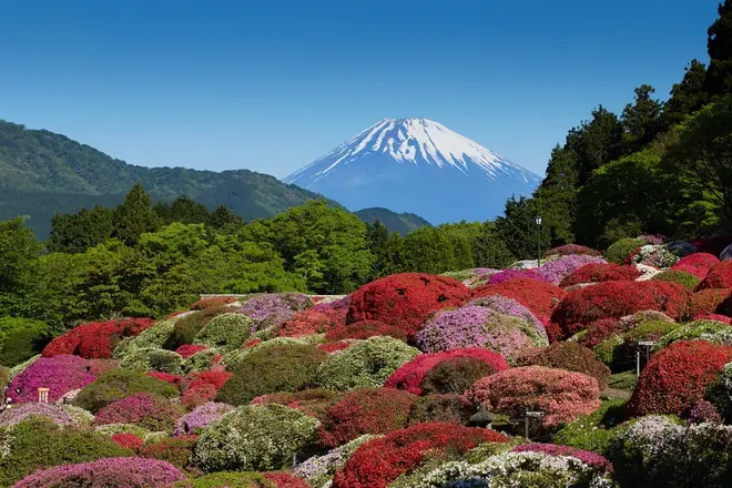 - 富士山や芦ノ湖をバックに広がるツツジを楽しめる