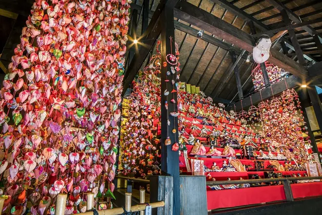 雛祭りのときに、雛壇の両脇に手作りの人形をつるす「雛のつるし飾り」という伝統文化が残る伊豆稲取温泉。娘の健やかな成長を願い、思いを人形に込めてひな祭りをお祝いする、母娘のつながりを感じる心温まる風習となっている。