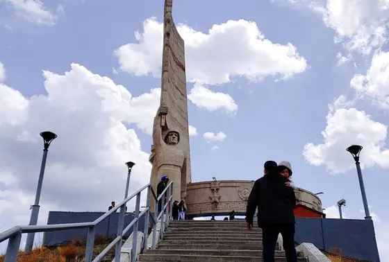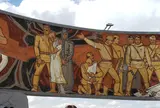 モンゴルとソ連の友好をイメージしたモザイク壁画に囲まれた展望台。頂上からはウランバートル市を一望できる。