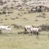 さまざまな野生動物が生息するが、なかでもモウコノウマ(タヒ)が保護されていることで有名。ウランバートルから3時間、道なき道をプリウスに乗ってひたすらタヒを探します。ちょうど子馬が生まれる時期で、親子のタヒをみることができました。