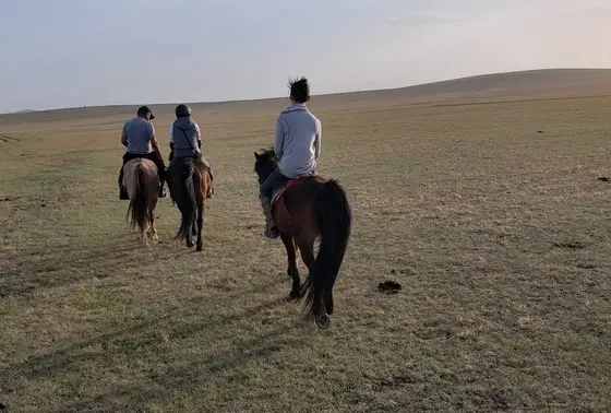 3時間コースの体験をしました。遊牧民のおじさんが綱を引いてくれるので乗ってるだけでOKです。日本語のわかるスタッフがついてきてくれます。お尻は痛いが楽しい。