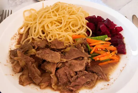 肉の炒め物。基本的には羊肉らしいけど、これは牛肉でした。