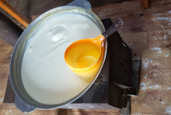 モンゴル版ミルクティー。茶葉を湯で沸かし、牛乳、塩、バターで味付けしたもの。食事中、お茶がわりに飲むようです。薄いミルクみたいな味。