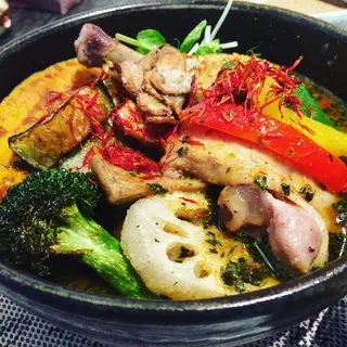 チキン野菜カレーを辛さ10倍で頂きました。次は30倍に挑みます☆