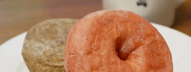 ホワイトチョコがかかったいちごドーナツを食べました!