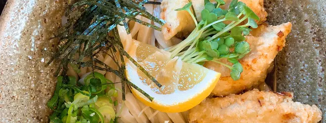 コシがあってモチモチで!とり天は分厚くてジューシー!!