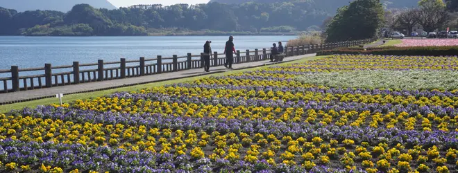 開聞岳と池田湖をバックにお花畑で写真を撮ることができます!