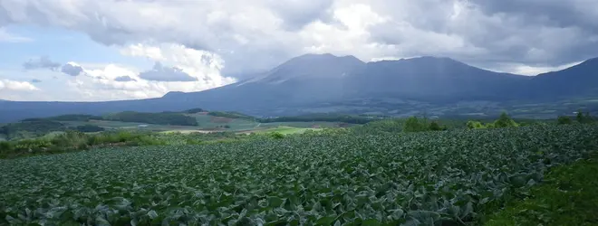 コース途中、キャベツ畑越しにみる浅間山。