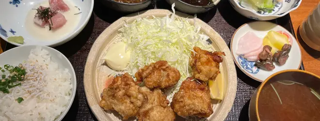 ほんとは魚が食べたかったけど焼き魚が鯖だったのでピンと来ず唐揚げ定食に。まず値段が安くて嬉しい!ソースが和風と油淋鶏風があって味変もできるのいい🙆🏻♀️