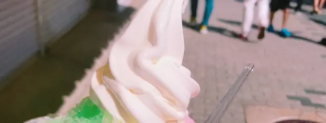 お魚のランチ、かき氷、ソフトクリーム、イカ焼きなど屋台料理のお店が連なります。