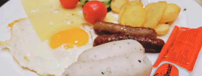 ミュンヘン名物白ソーセージが朝食に付いてます。