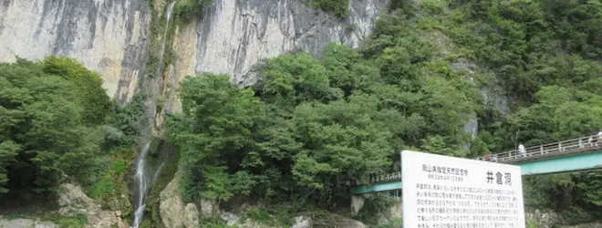 高さ約70mの滝。 井倉洞内の地下水を洞外へ排水するために作られた人工滝である。 付近にある絹掛の滝は、高さ約60mの3段の滝。 岸壁に白く絹を垂らしたような滝に見えることから絹掛の滝とも。 「奥の院」からは滝越しの景色を眺めることができ、不動明王が安置されていることから別名「不動の滝」とも。