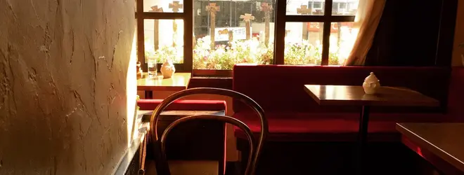 2階にあり、駅前を見渡せる大人の喫茶店。濃厚な珈琲とチーズケーキを注文したら、好きな本をゆっくりと読み耽りたい。