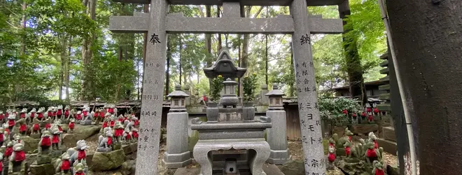 境内の広さは12.72ヘクタールを誇り、「千本のぼり」と呼ばれる幟がずらりと並んでいます。境内にある、大小約1,000体のキツネの像が並ぶ「霊狐塚(れいこづか)」は圧巻の眺めで、神聖な雰囲気を感じることができます。