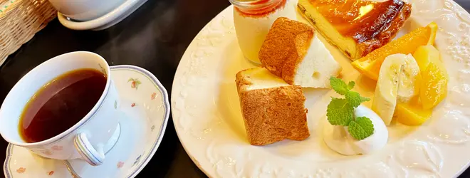 光市にある喫茶店。食事も楽しめる。写真はデザートプレートセット。焼きサンドも美味しい。