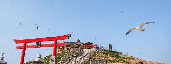 蕪島の「蕪(かぶ)」と「株」が同じ読みであることから、株価と人望の「かぶ」が上がるご利益があると言われる神社。