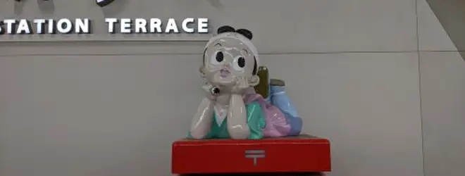 郵便ポストの上には桃太郎が。