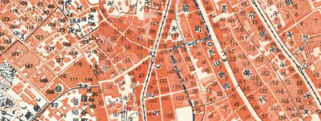 写真は、当時の地図。駒込西片町と白山神社をピンで示している。