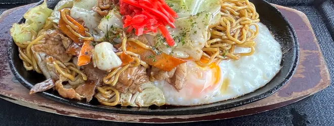 熱々鉄板焼きそばに目玉焼きと美味しかったです