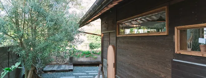 ちょっと分かりにくい場所にあるのがミソです。家具職人のカグスケさんが全てを手掛けたカフェです。中の家具も注文したら作ってくれるはずです。