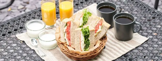 写真は朝のサンドイッチ。そのまま持ち帰りもできるらしい。