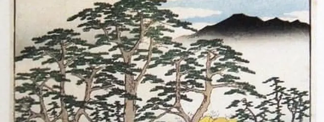 歌川広重、南期の松原左不二として描かれている。京へ向かう東海道で富士山が右手に見えるのが、ここ鳥井戸橋の辺りで道の左手に見える。この辺りで道が北北西に向きが変わっているためだ。