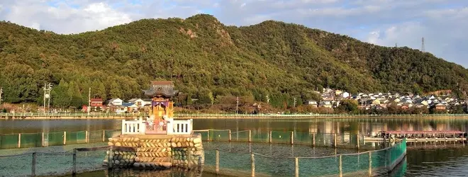 池の周囲をぐるりと廻れる散歩道になっています。池中央にある八大龍王総本殿では鯉の餌が販売しています。ちなみにおがせ池の鯉は数が多く、餌を与え始めると何処からともなく鯉が集まってきてかなり面白い光景が展開されます。