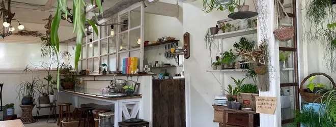 植物に囲まれてるカフェ。雰囲気良さそうでいってみたい。