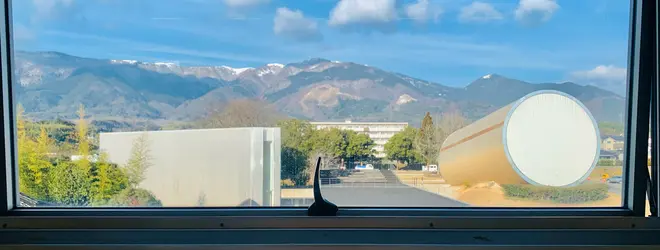 窓から臨む山脈とアートは、読書時の空想も広がりそう!!