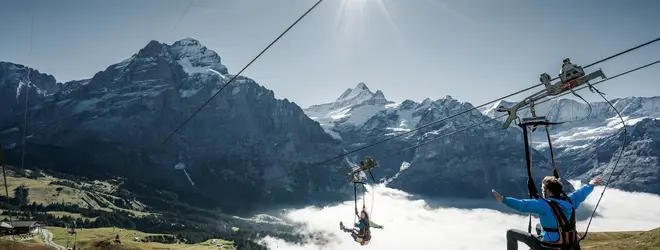 2つ目のアトラクションはフィルスト・フライヤー。フィルスト駅からひとつ下のシュレックフェルトまで、全長800m、時速84キロで一気に降下。