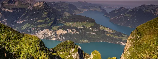 標高1922mからはルツェルン湖やツーク湖など10の湖、ピラトゥス山やリギ山をはじめアルプスの山々を見渡せます。遥か遠くにはほんの少しだけアイガーの姿が!目の前に広がる壮大なパノラマビューは素晴らしいの一言!