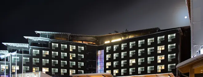 スキーゲレンデの中腹あたりに立つ、景観のいい大きなホテル。設備も充実していて、居心地抜群。街の散策やアクティビティを中心に楽しむ場合はお勧めです。サウナもあり、ゲレンデ下の街へはゴンドラで降りることができます。