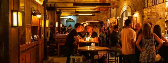 裏通りの地下にある「パーマー&コー」はアメリカ禁酒法の時代をテーマにしたバー。階段を降りたドアの向こうには、映画「アンタッチャブル」の世界が広がっています。