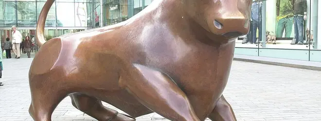 ニュースなどでバーミンガムが登場すると、必ずと言って良いほど登場するのがこちらの彫刻、高さ2.2mの堂々とした佇まい。「ブルリング」の名の通り、ヘレフォード種の雄牛がモデルです。ブルリングの名前の由来は、かつてこの辺りでは家畜の市場が開かれていたところにあります。デザインしたのはLaurence Broderick、2003年に完成しました。時々コスチュームが着せられていて、写真スポットとしても人気があります。