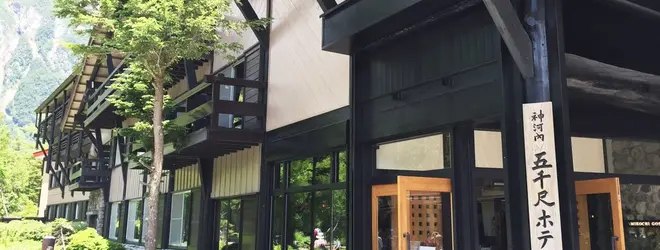 「神河内」の看板のある五千尺ホテルです。かつて「神降地」と呼ばれた上高地の変名の1つですね。