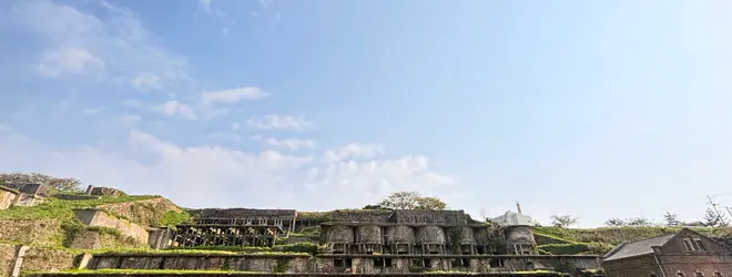 巨大なコンクリート建造物が草に覆われる外観は、まるで遺跡の様。