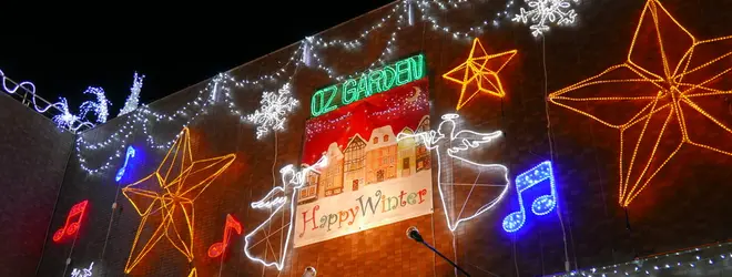 地下鉄大曽根駅に入るオズガーデンの入口正面にイルミネーションが飾られています。正直この辺り他に何もなさ気なのでこれだけでもイルミネーションを見ることができるのは救いです。