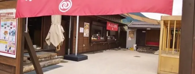 レールマウンテンバイク「ガッタンGO」の傍らにある、赤いのれんが目印のお休み処。