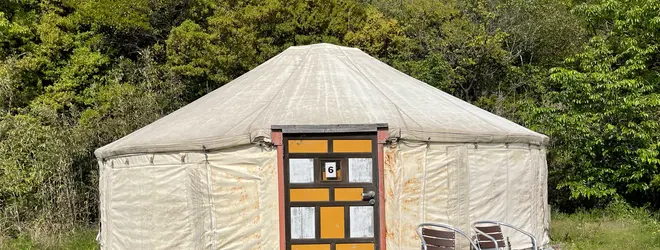 和風コテージ、トレーラーハウス、パオの3タイプから選べる宿泊施設です。中でも「パオ」は、モンゴルテントのような造りで、異国情緒が味わえます!目の前に海があるので、波音を聴きながらゆったりとした時間が過ごせます🌊