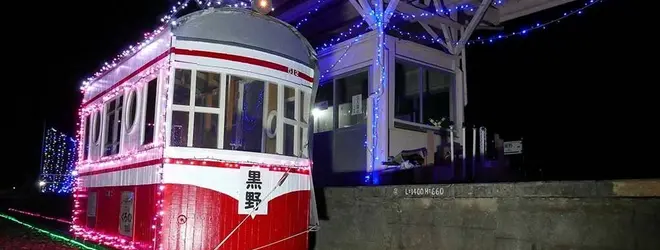 黒野駅ミュージアム、旧名鉄揖斐線黒野駅でイルミネーションがあるというので行ってきました。現在黒野駅はホームが一本と両側に線路、旧車両が一両展示されています。