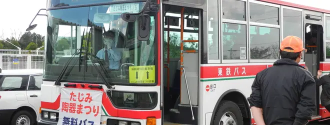 たじみ陶器まつりの当日は、現地近くには駐車場がありません。車でお越しの際は指定駐車場(無料)からシャトルバス(無料)が出ています。場所が会場入から少々離れているので分かり難いかもしれませんが、地図を見て何とか探してください。
