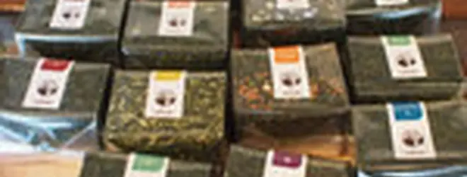 小分けになったお茶の葉やお菓子が買えるお店。