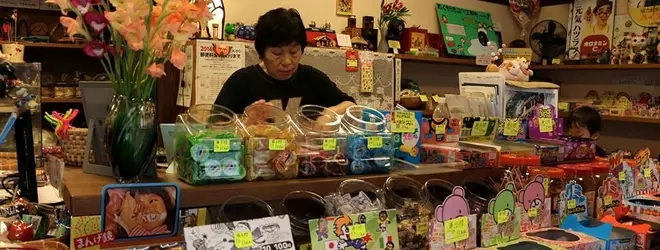 一見懐かしい雰囲気の駄菓子屋ですが、下駄や小物も販売してます。