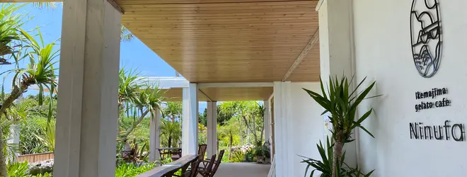 池間島にあるジェラートカフェ「Ninufa」。メニューは週替わりで、素材の味が活かされたジェラートが味わえます。